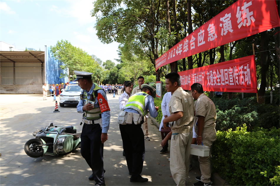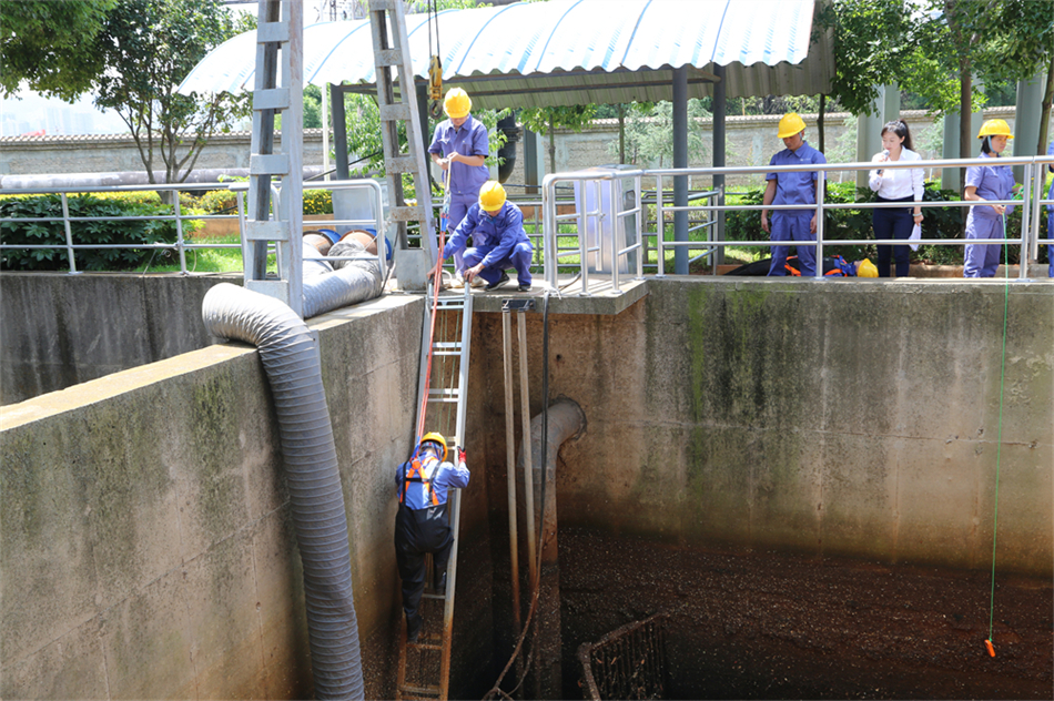 本次应急演练包含有限空间作业演练、道路交通及污泥泼洒突发环境事件演练、消防安全演练共三个科目,集团公司、运营公司、物流公司、监测公司派出参演人员40余人。演练过程中,参演人员对有限空间作业程序、应急救援进行演示,讲解有限空间作业的相关知识;展示污泥运输车交通事故和污泥泼洒的处置流程;最后开展了灭火实战演练。同时,本次道路交通事故演练科目邀请了昆明交警四大队警察参演,紧密配合,进一步加强与属地政府部门的沟通联动,为协同处置突发情况打下坚实的基础。
